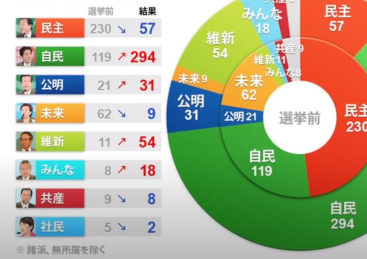 잃어버린 20년으로 장기불황을 겪게 되자 일본 국민들은 자민당을 버리고 민주당으로 정권을 교체해 버렸다. 일본 자민당은 1955년 이후 6년 6개월을 제외한 약 60년간 집권했다. 민주당이 정권을 잡았지만 그들의 정책은 실패했다. 국민의 지지를 받지 못하고 집권 기간 동안 매년 총리가 바뀌었다. 그정도로 정책 추진이 잘 되지 못하고 실패하자 일본 국민들은 3년 3개월 후 다시 자민당을 선택했다.